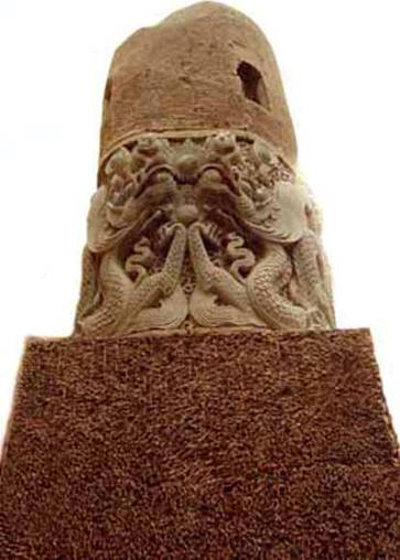 Chùa Dạm, Bắc Ninh, nổi tiếng với cột đá cao chừng 5m, một khối hình trụ (đường kính 1m30) chồng lên một khối hộp (1m4 x 1m6) - hai bộ phận sinh dục nam nữ - là biểu hiệu cho sự trường tồn, một biệt sắc rất Chăm.