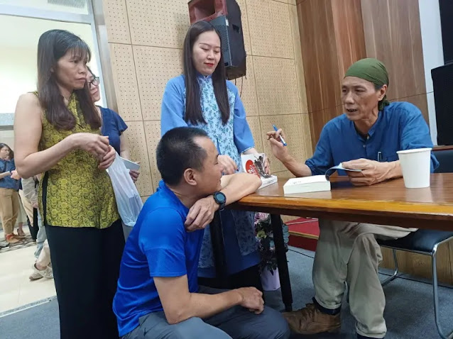Tác giả Ả đào - Một khảo cứu về lịch sử và hệ âm luật giao lưu cùng độc giả. Ảnh: Nguyễn Mạnh Hà